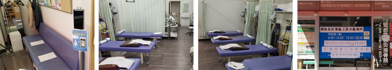 私たちは骨折・脱臼・捻挫・打撲・挫傷といった外傷をはじめ、スポーツ障害・肩の痛み・腰の痛み等・・・痛みに対しての治療をしています。 最新の医療機器をはじめ、用途に合わせて多種多数の治療器をそろえております。それらと施術者の手技療法を組み合わせ、患者様一人一人の症状に合わせた治療を行うよう心がけています。 明るく清潔で快適な施術スペースのある院内では、若さあふれる先生とベテランの先生たちが積極的に患者様と会話をし、信頼関係を築けるよう努めています。