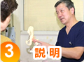 はじめに、治療方針を決めるために、お体の状態を詳しくお伺いいたします。できるだけ詳しく教えていただくと治療方針も決めやすくなります。 | 体をどこまで動かせば痛むのか、痺れが出るのか、想定される症状は何なのかを検査で調べます。 | お体の状態を骨の模型を使って、体の内部がどのようになっているのかをわかりやすく、納得いくまでご説明いたします。 | 問診・検査を経て、最適な治療を提供いたします。 原因に対して治療をする根本治療を行います。 | 治療終了後に治療の効果が継続的に続くように、簡単な筋力トレーニングを行います。また生活でのアドバイスも致します。 |